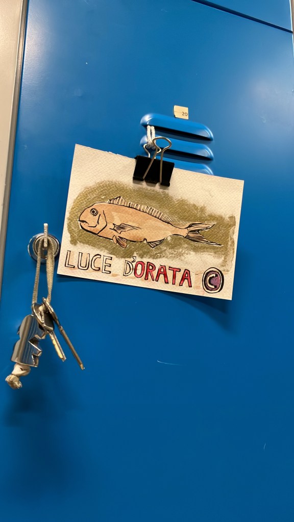 In basso c’è un piccolo cavallo rampante, in alto “teneri bottoni” rosa e la traduzione del famoso verso di Gertrude Stein “A Rose is a Rose is a Rose”.