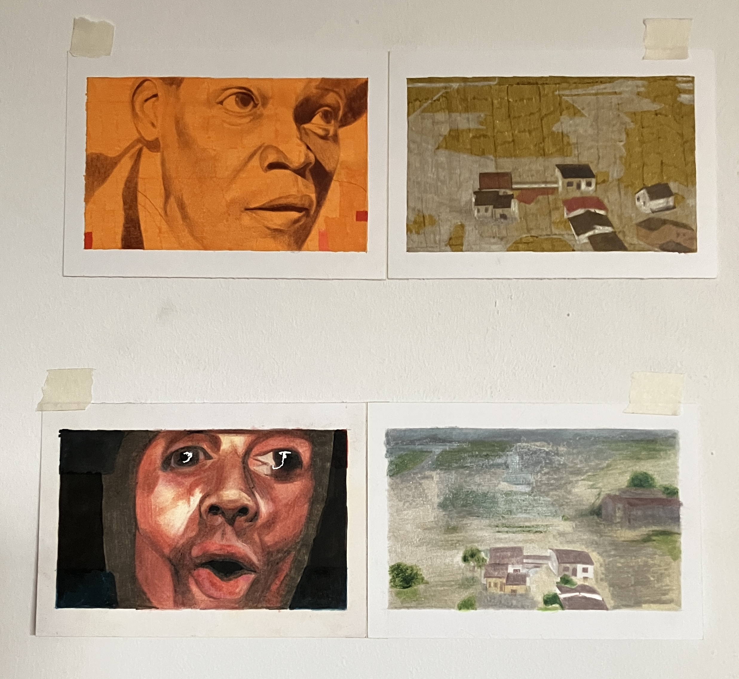 6. “Giudizio universale minimo” collage, matite colorate, pennarelli e china su carta, 53×38 cm, 2023 (4 opere della serie)