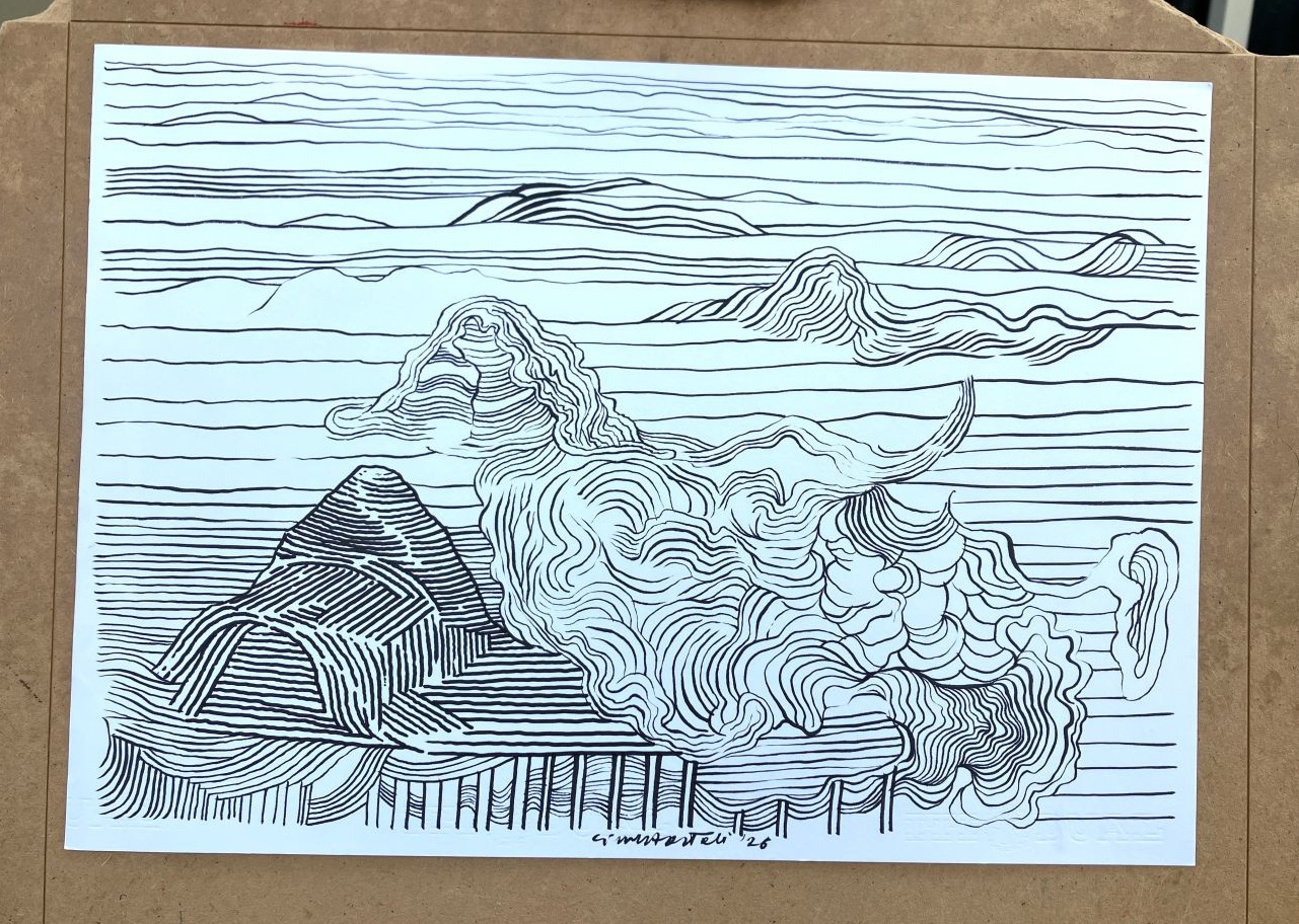 Senza titolo (tana e anatra nel paesaggio), china su carta ITI DUAL, 2026
