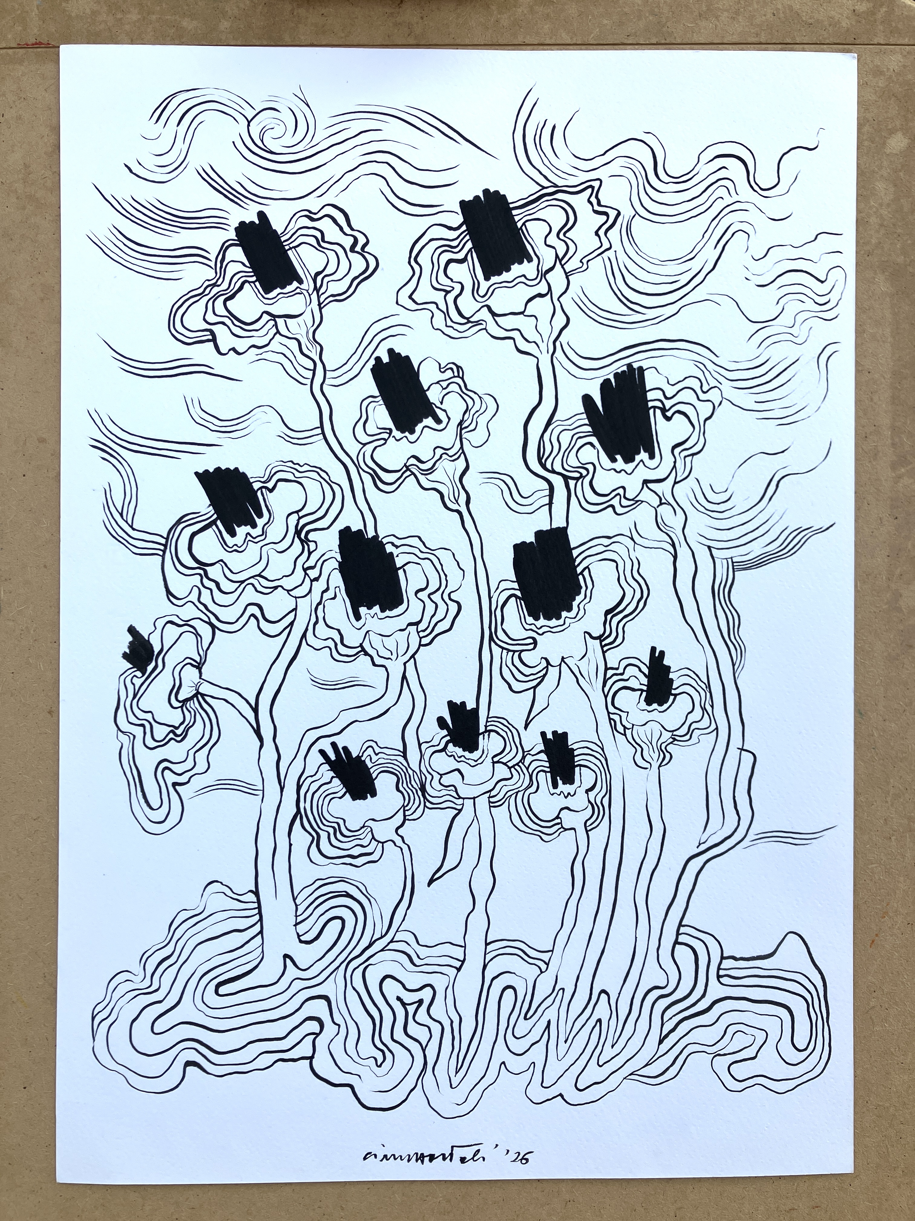 Senza titolo (fiori), china su carta ITI DUAL, 2026