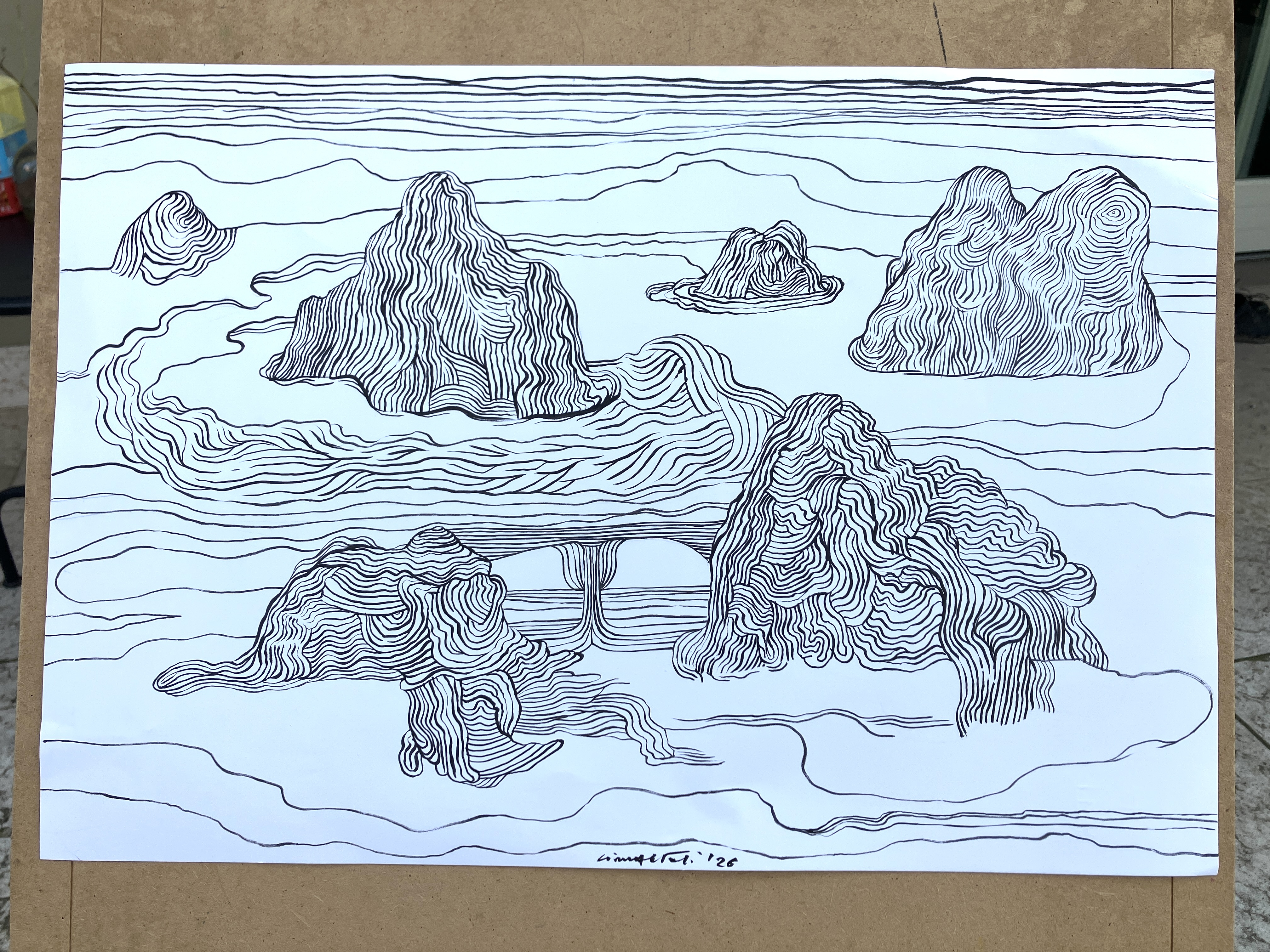 Senza titolo (scogli), china su carta 33×50 cm, 2026