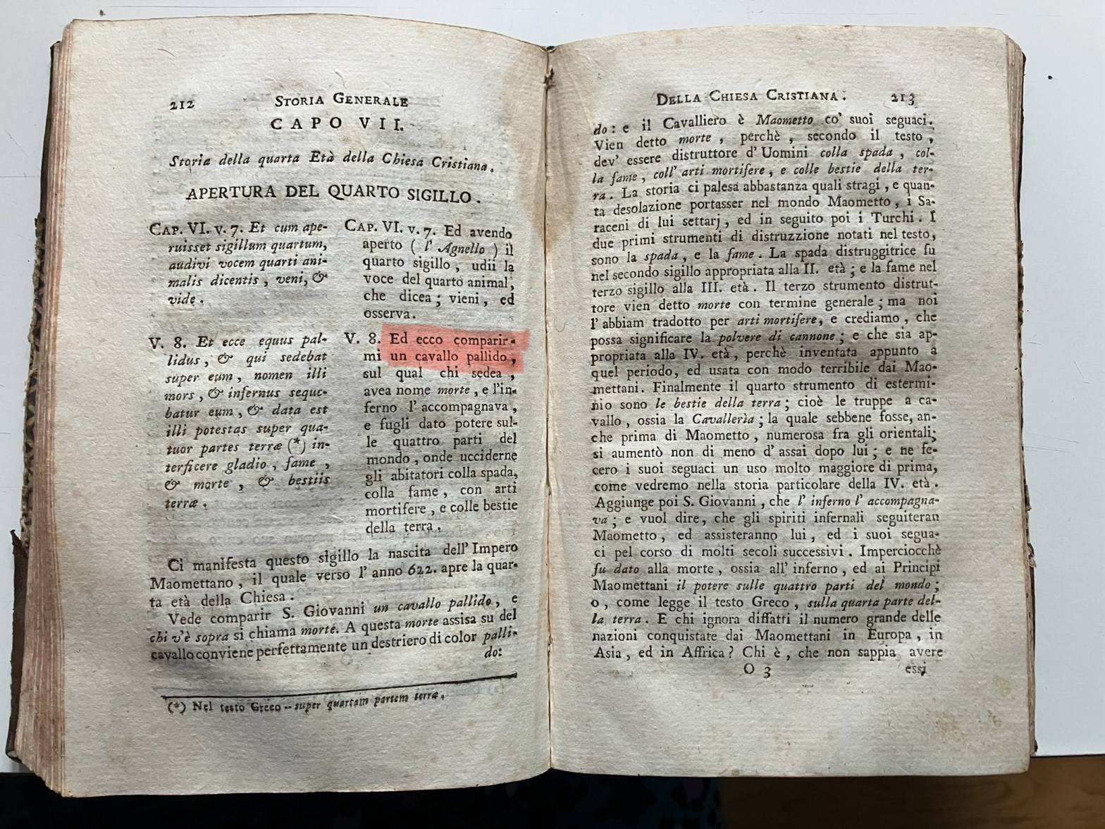 Passa un mese e il libro è ancora lì: “Storia generale della chiesa cristiana” , Cesena, 1794. Belli i libri antichi, con le lettere impresse sulla carta che lasciano incisa la pagina. L’autore è un misterioso Mons. PASTORINI di cui