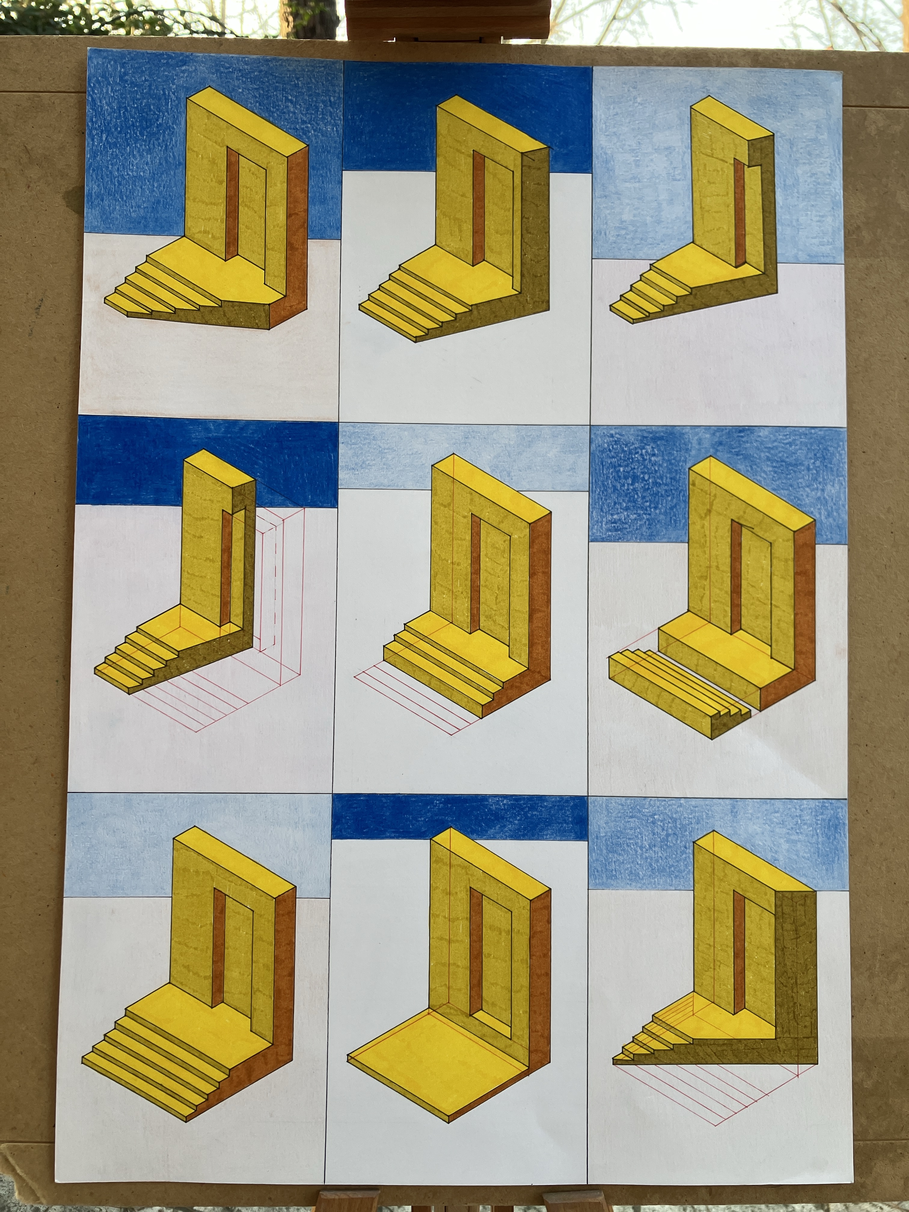 8. “Paralipomeni alle storie di San Girolamo dipinte da Cesare Pronti per l’oratorio dei padri agostiniani in Rimini” matite colorate su carta, 79×24 cm ciascuno (serie di 6 disegni), 2023